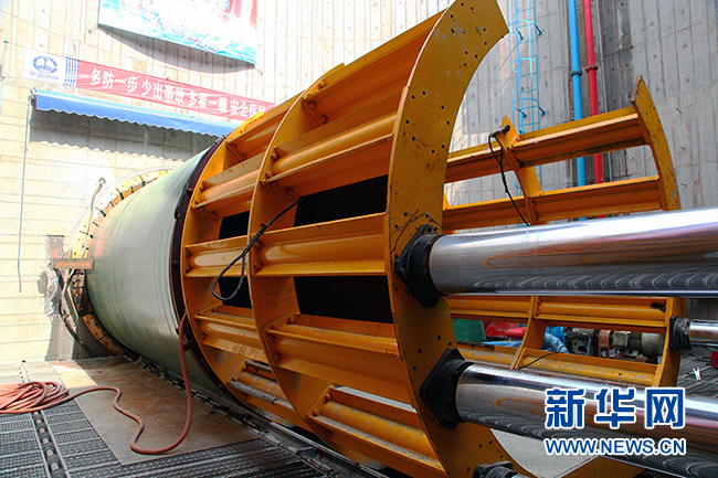 廖春林說,與傳統的盾構施工不同,黃浦江上游水源地連通管工程采取更為環保的頂管技術。頂管技術是指頂管機頭切削土體,后方由千斤頂頂進管節,頂進一定距離后,千斤頂回縮,在工作井內裝入新的管節,再頂進,如此重復,直到機頭到達接收井。