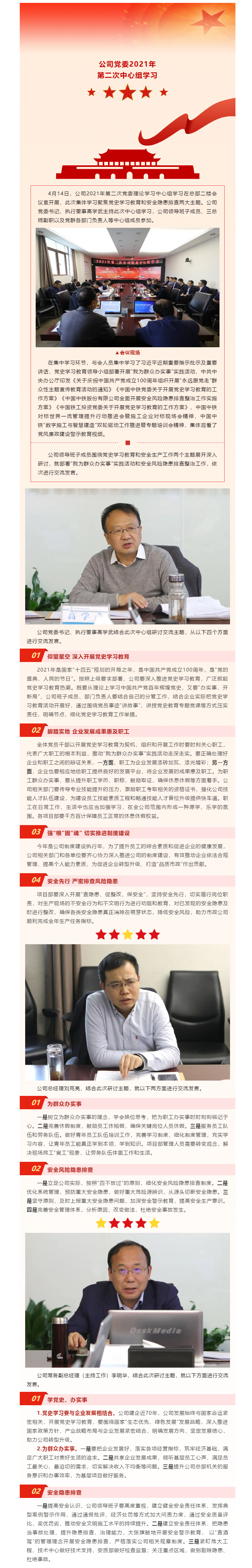 公司黨委理論學習中心組舉辦黨史學習教育和安全隱患排查集體學習