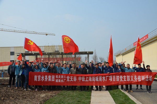 3月22日,南京水務集團機關第三、城南水廠黨支部聯合中鐵上海局南京夾江(城南水廠)取水口整合項目部黨支部開展義務植樹活動。南京市城建集團黨委委員、南京水務集團黨委書記、董事長單國平,副總經理宋非,中鐵上海局市政公司副總經理張杰,副總經理何維義及部分黨員、職工等60多人參加此次活動。
