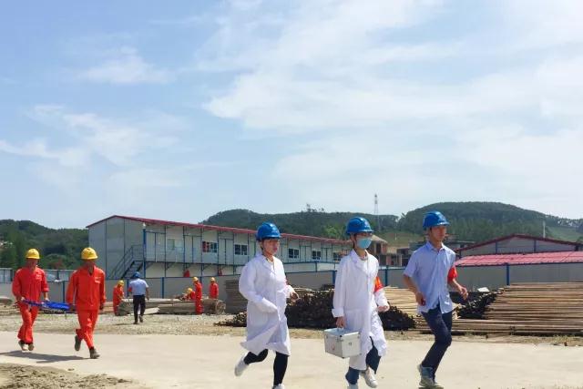 本次演練設(shè)定2018年第1號臺風(fēng)來臨,演練分為三種場景:福州市氣象臺分別發(fā)布黃色、橙色、紅色預(yù)警信號,市防指揮部依次啟動III級、Ⅱ級、I級響應(yīng)預(yù)案。目演練模擬了基坑排水不暢搶險排澇、施工現(xiàn)場設(shè)備材尚未加固,臨建松動、辦公生活區(qū)用電設(shè)備突然全部停止作業(yè)、搶險員在材料廠負(fù)傷,傷勢較重等場景。針對以上情況,抗臺組立即組織人員將現(xiàn)場材料集中固定,就地加固;排洪組立即疏通排水系統(tǒng),組織機(jī)械加大加寬排水溝,增設(shè)水泵加快排水;電力保障組啟動發(fā)電機(jī)組迅速恢復(fù)供電,確保基坑安全;生活醫(yī)療組立即趕往現(xiàn)場,對傷員進(jìn)行初步處理,聯(lián)系瑯岐當(dāng)?shù)蒯t(yī)院,詳細(xì)描述傷員情況,請求救護(hù)車及時到位。